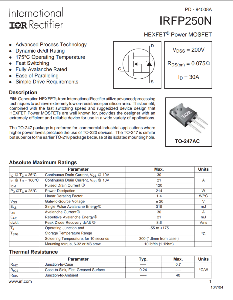ขออภัย สินค้าหมด | IRFP250-อะไหล่ถอด ![]()