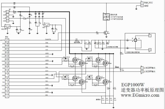 1, power frequency mode, EGP1000W inverter power board mounted on the parts diagram: