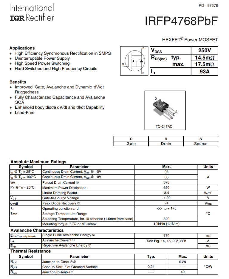 T216:IRFP4768 MOSFET 250V 83A ![]()