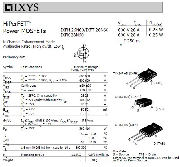 IXFH26N60 ![]()