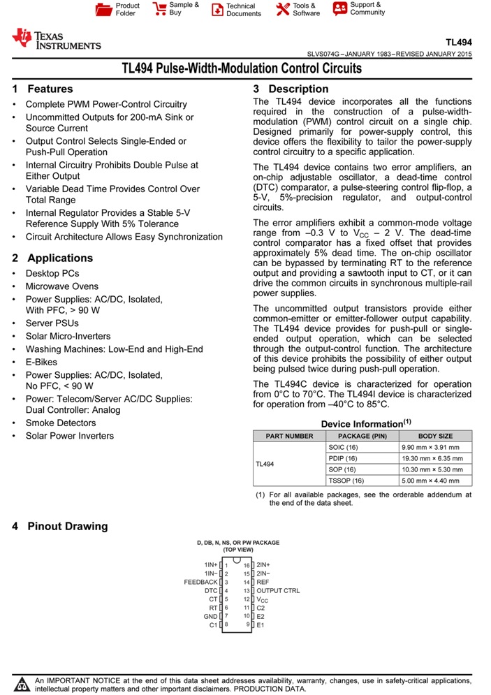 TL494 Datasheet:ดาวน์โหลดที่นี่