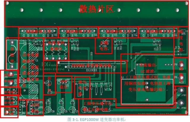 1, power frequency mode, EGP1000W inverter power board mounted on the parts diagram: