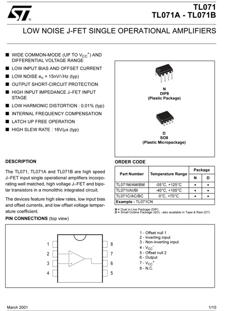 TL071 Datasheet: ดาวน์โหลดที่นี่
